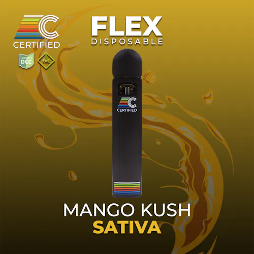 AROMA: Juicy mango richness from Myrcene; Floral tropical lift from Ocimene; Citrus brightness from Limonene; Spiced herbal depth from Caryophyllene. DESCRIPTION: Mango Kush offers a tropical, fruit-forward aroma dominated by high Myrcene, which brings a rich, juicy mango character layered with musky sweetness. Ocimene adds bright, floral lift, while Limonene and Caryophyllene provide zesty citrus and a subtle spiced warmth. Beta-Pinene introduces a piney freshness that balances the fruit notes, while Linalool, Citral, and Geraniol contribute soft floral and citrusy sweetness. A touch of Terpinolene and Carene round out the profile with herbal, woody, and lightly resinous undertones. The result is a smooth, tropical aroma with depth — sweet, floral, and grounded by a piney finish. VIBES: A tropical, fruit-rich cultivar with an easygoing pace and soft herbal undertones; ideal for casual, feel-good sessions. — ~4.87 - 4.99% TOTAL TERPENES: PRIMARY TERPENES: Myrcene | Ocimene SECONDARY TERPENES: Caryophyllene | Limonene | b-Pinene / Linalool | Citral | Geraniol | Terpinolene | Bisabolol | Carene (based on average of test results; may vary from batch-to-batch) — ABOUT: Discreet and effective; these all-in-one vape pens are created to mimic the effects of strains without a predominant cannabis aroma & flavor. We carefully source high-quality and flavorful botanical terpenes to provide a unique medication experience. More flavor, similar effects! — HARDWARE: Packaged in a CCELL FLEX Disposable & Rechargeable All-in-One. • No Heavy Metals • Inhale Activated • Huge Clouds without Clogging • Flavorful & Smooth Hits **USB-C charging**